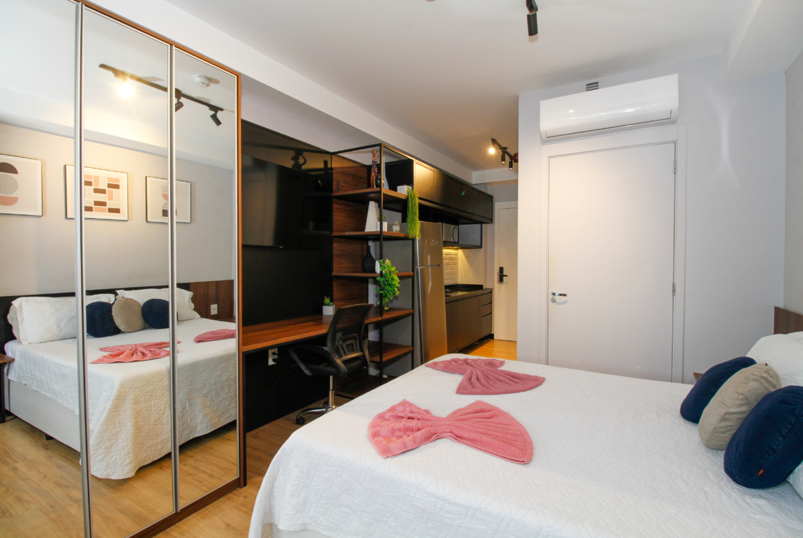 Área Total: 31 m² de puro charme e funcionalidade Mobiliado.